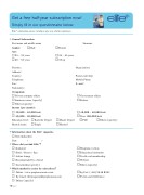 Get a free half-year subscription now! Simply fill in our questionnaire below:Elite+ satisfaction survey: to help us give you a better experience.General InformationFirst name and middle name Gender: MaleAge:25 - 35 years 46 - 55 yearsPosition: Address: Country: Telephone: Fax: Nationality: Occupation:Private company officer Business owner (specify) Others (specify)Income (per month):20,000 - 40,000 Baht60,000 - 80,000 Baht Education level: Bachelor Degree Marital status: SingleInformation about the Elite+ magazine New SubscriberDate / /Where did you find Elite+? BookstoreHotel / Resort / Spa Airline lounge Recommended by a friend Social media (specify)Which method is easiest for subscribers?Surname Female36 - 45 years 56 upOrganization:Postal code/Zip: Mobile Phone: E-mail:Government officer Retiree40,000 - 60,000 Baht Over 100,000 BahtPhD Others (specify)Hospitals or clinic Educational institution Credit card membership WebsiteOthers (specify)By Fax: (+66) 2448 0393 Events and exhibitions:Master Degree MarriedOnline : www.praphansarnasia.comBy email: elitemagazine@praphansarn.com Others (specify)78 Elite+