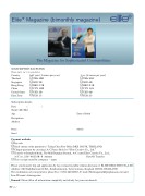Elite+ Magazine (bimonthly magazine)The Magazine for Sophisticated CosmopolitansSUBSCRIPTION RATES FOR Please mark (ü) on your choiceCountry Thailand Singapore Hong Kong China United States Euro Zonehalf year (3 issues per year)THB 500 SGD 20 HKD 120 CNY 100 USD 20 EUR 151 yrs (6 issues per year)THB 950 SGD 40 HKD 230 CNY 185 USD 40 EUR 25Subscription detailsDate / /Name (Mr/Ms)Age Date of Birth OccupationAddressPhone Mobile EmailPayment methodsBy cashSend money order payment to Taling Chan Post Office BKK 10170, THAILAND. Cheque payment by crossing (A/C Payee Only) to “Elite Creative Co., Ltd.”Transfer to Bangkok Bank, The Mall Bangkae Branch, A/C name Elite Creative Co., Ltd., A/C no. 238-462330-8 Amount Date Of TransferThis receipt issued by company – namePlease send transfer slip and application by fax or email to public relation devision of ELITE CREATIVE CO.,LTD. Address: 222 Buddhamontol 2 Rd., Salathammasop, Taweewattana, Bangkok 10170, THAILAND.The confirmation of your payment, please Fax: +662 448 0393, E-mail: Elitemagazine@praphansarn.com and Line ID name: elitemagazineRemark: Please fill in all information completely and clearly for your own benefit. 80 Elite+
